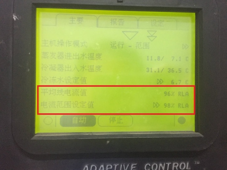 ▲現(xiàn)場冷凍機電流值數(shù)據(jù)