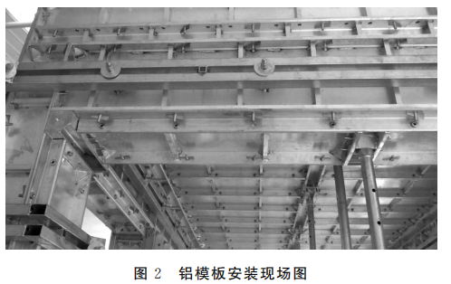 在工程施工正式開始之前,施工人員利用BIM技術(shù),對(duì)每一種類型的裝配式部件進(jìn)行模擬組裝,并根據(jù)施工過(guò)程以及預(yù)制配件的實(shí)際尺寸、形狀,對(duì)鋁模板進(jìn)行裁剪,確保鋁模板的形狀符合施工現(xiàn)場(chǎng)現(xiàn)澆作業(yè)標(biāo)準(zhǔn)。這樣不僅能夠保證現(xiàn)澆部件的參數(shù)精度,還可以省去在施工現(xiàn)場(chǎng)裁剪模板的過(guò)程,節(jié)省了大量時(shí)間,確保每一塊鋁模板都能夠緊密地連接在一起。施工人員對(duì)預(yù)制部件進(jìn)行吊裝以及拼接,在確定預(yù)制部件已經(jīng)安全就位之后,對(duì)梁體以及墻柱進(jìn)行綁扎,同時(shí)進(jìn)行鋁模板的安裝以及校正工作,如圖2所示。